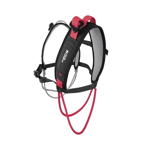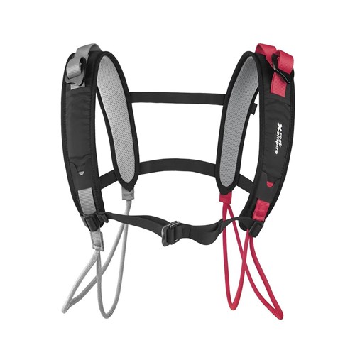 To nie jest uprząż piersiowa ani sprzęt asekuracyjny — to funkcjonalne uzupełnienie uprzęży Rock Empire Gladiator, które pozwala rozmieścić i zorganizować duże ilości sprzętu w wygodny i ergonomiczny sposób.