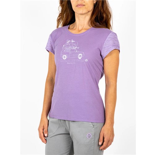 Przód wykonano z gładkiej bawełny, natomiast rękawy i tył z dzianiny typu jersey jacquard, która jest lekko elastyczna, przyjemna w dotyku i bardzo trwała. Dzięki temu koszulka świetnie dopasowuje się do ciała, zapewniając pełną swobodę ruchów – zarówno podczas wspinaczki, jak i codziennego użytkowania.