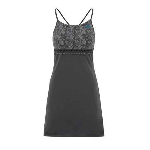 Na froncie znajduje się subtelny nadruk oraz ozdobna wstawka z haftowanej taśmy, która dodaje sukience charakteru i delikatnego, rzemieślniczego akcentu. Nowoczesny krój sprawia, że model Debby świetnie prezentuje się zarówno w miejskich stylizacjach, jak i w podróży czy po dniu wspinania – gdy liczy się komfort i lekkość.