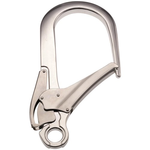Karabinek (hak) typu MGO. Wykonany z aluminium.