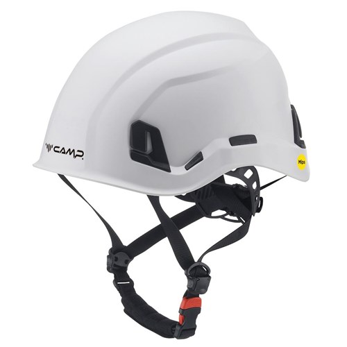 Nowoczesny i bezpieczny kask powstały jako wynik współpracy CAMP oraz szwedzkiej marki MIPS. Model Ares Mips zaprojektowano celem zwiększenia bezpieczeństwa pracownika w sytuacji zderzenia upadającego przedmiotu z kaskiem. Liczne testy i badania potwierdzają, że system znacznie zwiększa bezpieczeństwo poprzez redukcję obrażeń głowy. W sytuacji uderzenia, kask ulega przemieszczenia od 10-15mm zmniejszając tym samym siły rotacyjne działające na narząd ruchu człowieka. Ponadto kask wyposażony jest w klamrę podbródkową, która ulega siłom od 15-20kg, dlatego też nie stanowi ryzyka uduszenia.