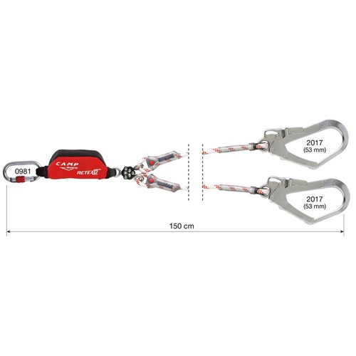 Lonża typu Y wyposażona w nowy absorber energii Retexo, krętlik Gyro, poprawiający komfort pracy oraz dwa ramiona wykonane z liny zakończone karabinkami typu MGO o dużym prześwicie. W komplecie owalny karabinek stalowy do łączenia z szelkami bezpieczeństwa/uprzężą. Lonża wraz z karabinkami ma długość 150 cm.