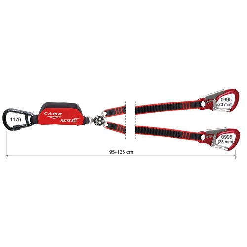 Lonża typu Y wyposażona w nowy absorber energii Retexo, krętlik Gyro oraz dwa elastyczne ramiona zakończone karabinkami Hercules. W komplecie karabinek do łączenia z szelkami bezpieczeństwa/uprzężą. Dzięki elastycznym ramionom lonża wraz z karabinkami ma długość od 95 do 135 cm.