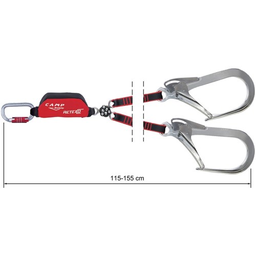 Lonża typu Y wyposażona w nowy absorber energii Retexo, krętlik Gyro oraz dwa elastyczne ramiona zakończone karabinkami typu ALUHOKK o bardzo dużym prześwicie -110mm. W komplecie karabinek do łączenia z szelkami bezpieczeństwa/uprzężą. Dzięki elastycznym ramionom lonża wraz z karabinkami ma długość od 115 do 155 cm.