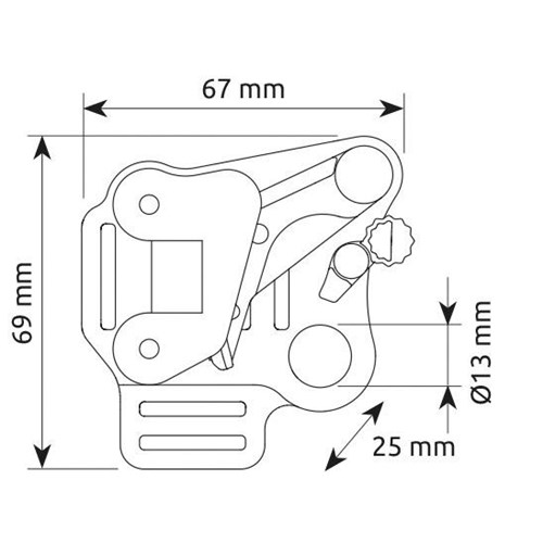 W ograniczonym zakresie może być wykorzystany jako bloczek z blokadą (do 50kg). Współpracuje z linami o średnicach od 8 do 13mm.