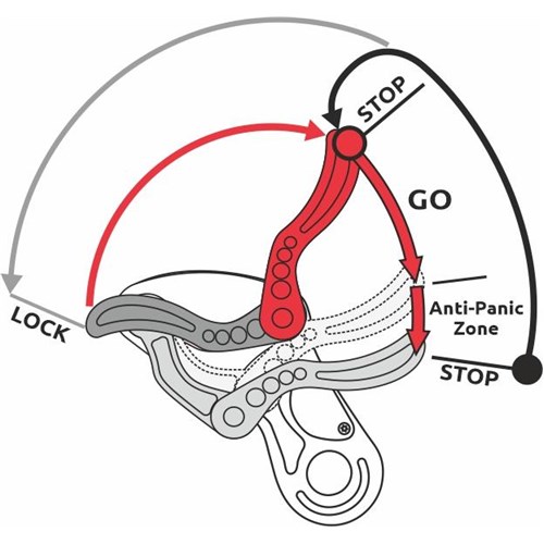 spustu, aby umożliwić szybkie przesuwanie liny w sytuacjach bez obciążenia lub