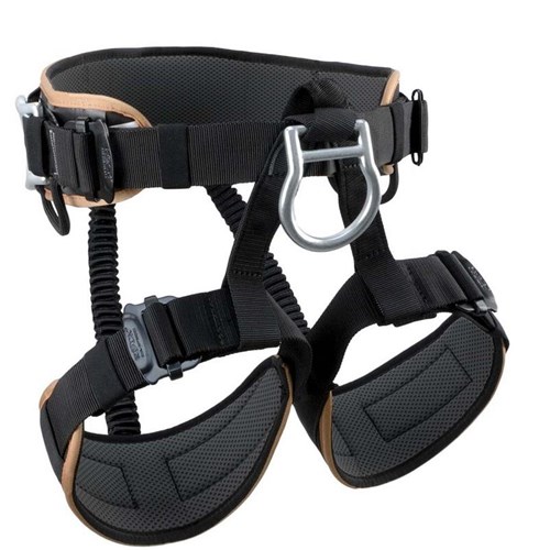 Elastyczne taśmy trzymające tyły nogawek zapewniają ich samoczynne poprawne ustawienie w czasie zmian pozycji w ruchu czy siedzeniu. Uprząż posiada 6 szpejarek, świetnie wykonane pianki w pasie i nogawkach oraz dwa wzmocnione łączniki tekstylne na przedzie. Jeden ma na stałe wszyty D-kształtny metalowy punkt podczepienia. Drugi służy do wpięcia karabinka trzymającego odpowiednie szelki.