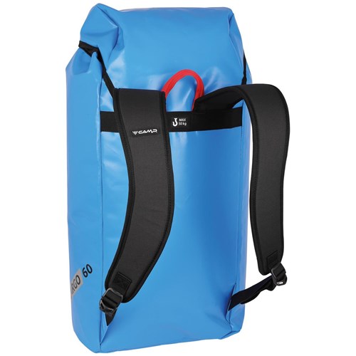 Wyposażony w przeźroczystą kieszonkę na wizytówkę lub opis zawartości oraz kieszeń na zamek w klapie. Plastikową klamerkę zamykającą zastąpiono metalowym hakiem, który nie pęknie, nawet gdy przypadkowo zostanie nadepnięty lub przygnieciony ciężkim sprzętem. Wyściełane szelki zwiększają komfort noszenia. Wewnątrz worka znajdują się pętelki do przywiązania końcówki liny. Rączka ułatwiająca zakładanie lub podwieszenie plecaka do liny czy konstrukcji wytrzyma obciążenie do 50kg.
