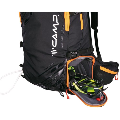 W dolnej części zaprojektowano kieszeń na raki z bezpośrednim dostępem z boku plecaka. Przestrzeń tą można połączyć w jedną całość o pojemności 20L. Na froncie znajduje się kieszeń z uchwytami na łopatę i sondę lawinową.