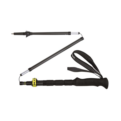 Carbon Mix Plus to składane kije, w których zastosowano włókno węglowe zapewniające lekkość i sztywność. Środkową sekcję ze stopu aluminium pokryto włóknem węglowym dla dodatkowej odporności. Ergonomiczny uchwyt z miękkiej pianki zapewnia duży komfort, a przedłużona rękojeść pozwala na przesuwanie uchwytu bez konieczności regulacji wysokości kijów.