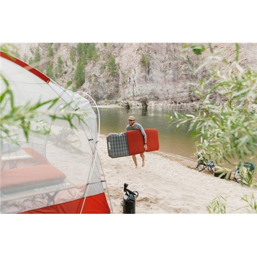 Insulated Klymaloft może pochwalić się współczynnikiem R-Value na poziomie 7.0 mierzonym zgodnie z nowym standardem ASTM 3340-18. Oznacza to, że niestraszne mu niskie temperatury. Zawór posiada blokadę zwrotną czyli powietrze nie ucieka w czasie nadmuchiwania. Pompowanie ułatwia dołączony do zestawu worek pompka o dużej pojemności.