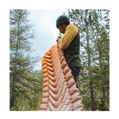 Dzięki unikalnej konstrukcji V-Chamber™ materac dopasowuje się do ciała, redukując punkty nacisku i eliminując problem zimnych stref. Dodatkowo głębokie przeszycia pozwalają śpiworowi rozprężać się pod ciałem, co zwiększa izolację termiczną i sprawia, że sen w terenie jest jeszcze przyjemniejszy. Boczne „skrzydełka” stabilizują pozycję śpiącego, zapobiegając przesuwaniu się w trakcie nocy.