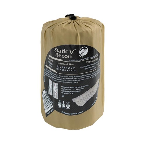KLYMIT Static V Rencon to komfortowy materac w militarnym stylu. Static V to komfortowy materac z wytrzymałymi komorami V-ksztaltnymi. Zapewniają one bezproblemowy przepływ powietrza i właściwe ułożenie w trakcie snu. Aktywne boczki usztywniają całość konstrukcji i dbają o to, żebyś nie spadł z materaca w środku nocy.