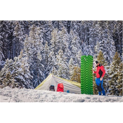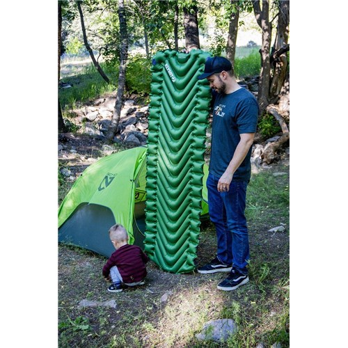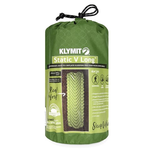 KLYMIT Static V to najpopularniejszy materac w ofercie. Static V to komfortowy materaca z wytrzymałymi komorami V-ksztaltnymi. Zapewniają one bezproblemowy przepływ powietrza i właściwe ułożenie w trakcie snu. Aktywne boczki usztywniają całość konstrukcji i dbają o to, żebyś nie spadł z materaca w środku nocy.