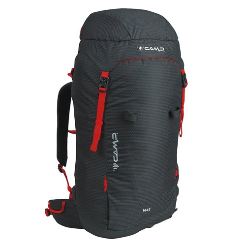 Model M45 doskonale łączy pojemność dużego plecaka ze stabilnością i dopasowaniem mniejszego plecaka. Posiada wiele unikalnych funkcji, które wyróżniają plecaki CAMP z serii M. Najważniejsza to Full BackDoor Panel, czyli nieograniczony dostęp do zawartości dzięki otwieranej na zamek części od strony pleców. Rozwiązanie pozwala szybko znaleźć każdy element bagażu oraz chroni system nośny przed zabrudzeniem, gdyż plecak można położyć przodem do podłoża.