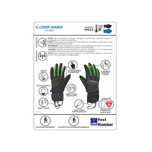 Miękkie, zręczne i oddychające rękawice Camp G Comp Warm zaprojektowane do narciarstwa wysokogórskiego i aktywności aerobowych w zimnych warunkach.