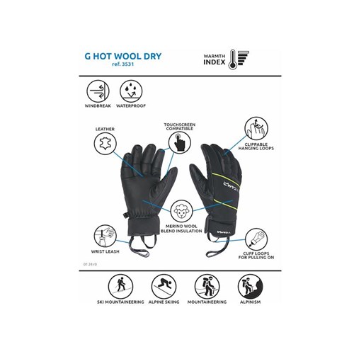Model G Hot Wool Dry to wyjątkowa, wszechstronna rękawica górska, wyróżniająca się zastosowaniem naturalnych materiałów, które zapewniają wysoki poziom wydajności oraz naturalną regulację ciepła. Izolacja składająca się w 60% z wełny merino gwarantuje ciepło i komfort.
