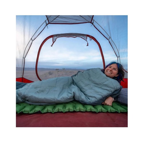 Konstrukcja typu mumia wspiera utrzymanie temperatury, a regulowany kaptur dokładnie otula głowę, ograniczając straty ciepła. Poszerzona przestrzeń w wersji Large poprawia komfort snu i daje więcej swobody ruchów – bez uczucia ciasnoty, które często pojawia się w klasycznych śpiworach.
