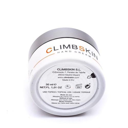 CLIMBSKIN® HAND CREAM łączy oleje i ekstrakty najwyższej jakości w produkt o gęstej konsystencji, ale szybko wchłaniającym się, odpornym na ekstremalne warunki, ale nie tłustym. Krem do rąk Climbskin nie zawiera sztucznych barwników ani perfum, tylko najlepsze składniki, których połączenie daje przyjemny, naturalny i charakterystyczny zapach. Cały proces produkcyjny jest przyjazny dla środowiska i wolny od okrucieństwa (nie testowany na zwierzętach).