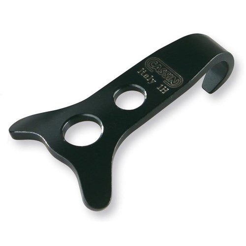 Hak Camp-a, wyposażony w dodatkowe "nóżki" stabilizujące hak w trakcie obciążenia. Dwa otwory umożliwiają stosowanie szerokiej i wąskiej taśmy.