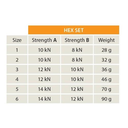 Hex Set firmy Rock Empire idealnie nadaje się do wspinaczki w szerokich rysach. Kości mają szeroki zakres zastosowania w różnych warunkach wspinaczkowych.