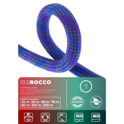 Lina dynamiczna Rocco to doskonały wybór do wspinaczki halowej. Dzięki średnicy 10 mm zapewnia wysoką wytrzymałość i trwałość, dzięki czemu idealnie nadaje się na długie dni wspinaczki na ścianie wspinaczkowej. Niezależnie od tego, czy chodzi o wspinaczkę prowadzącą, czy górną, Rocco jest łatwa w obsłudze zarówno dla asekurujących, jak i wspinaczy. Oferuje pełną wydajność przez cały okres użytkowania dzięki oplotowi Endurance i konstrukcji Fusion. Rocco jest przeznaczony dla wspinaczy na wszystkich poziomach i jest szczególnie odpowiedni dla tych, którzy szukają liny o dużej średnicy do wspinaczki sportowej i niskiej sile uderzenia. Jej nazwa jest inspirowana najgrubszą liną w kolekcji lin dynamicznych Fixe.